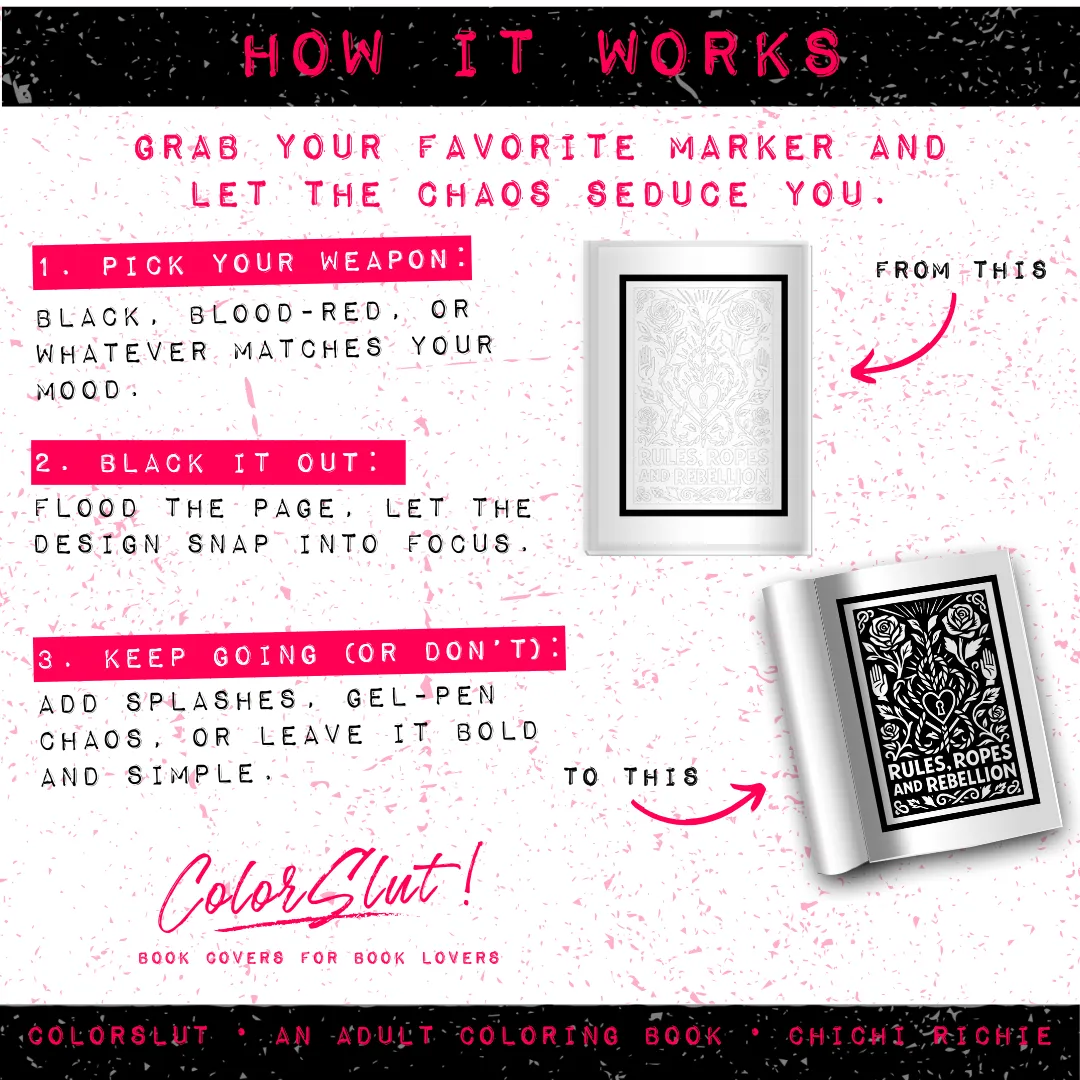 ColorSlut: Smutty Vol. 1 is a monochrome coloring book that knows you’d rather be reading.