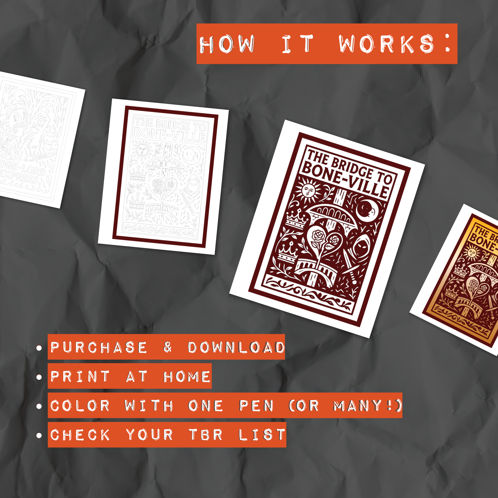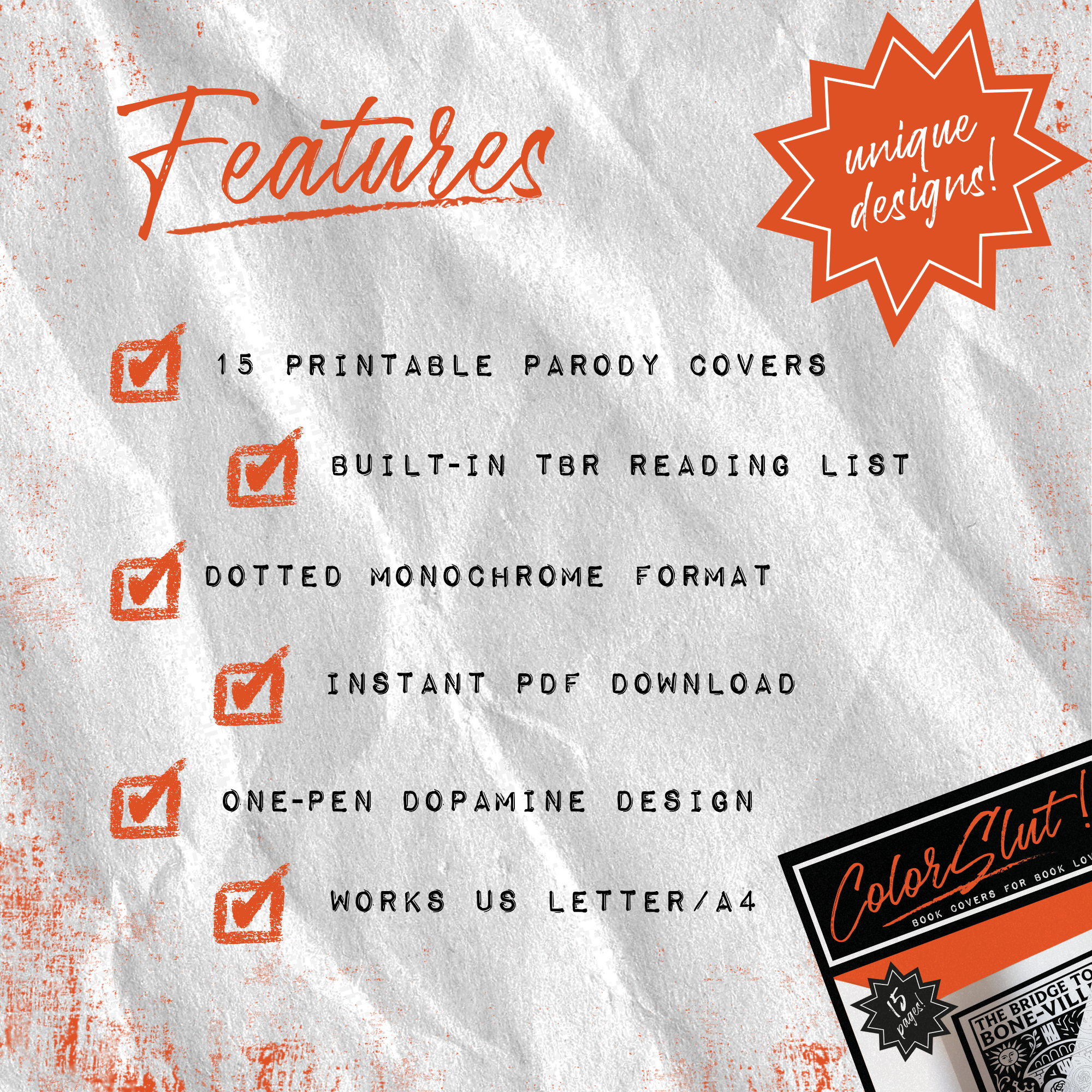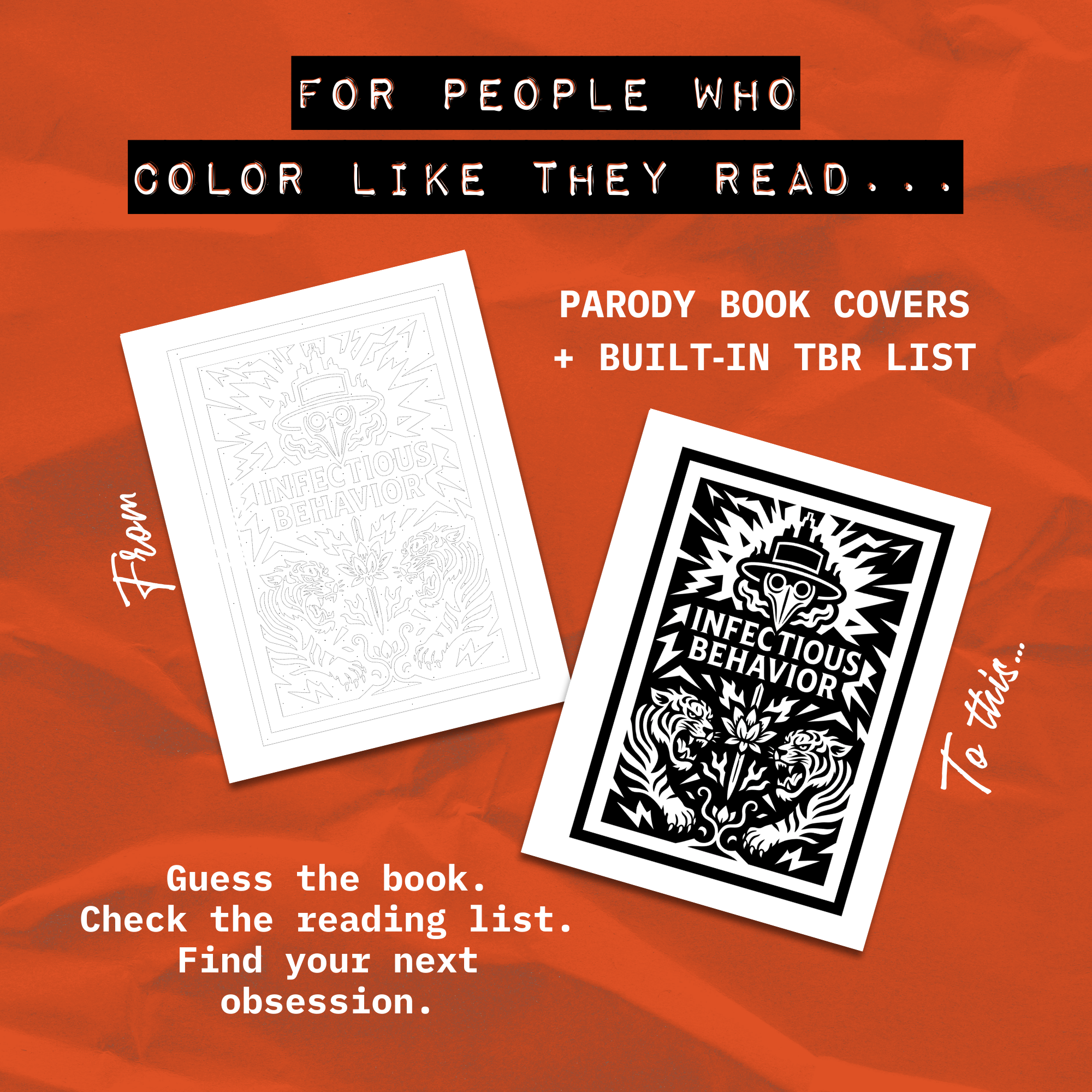 Funny coloring for chaotic adults. 15 printable parody covers + humor TBR list. One‑pen dopamine design. Instant PDF.