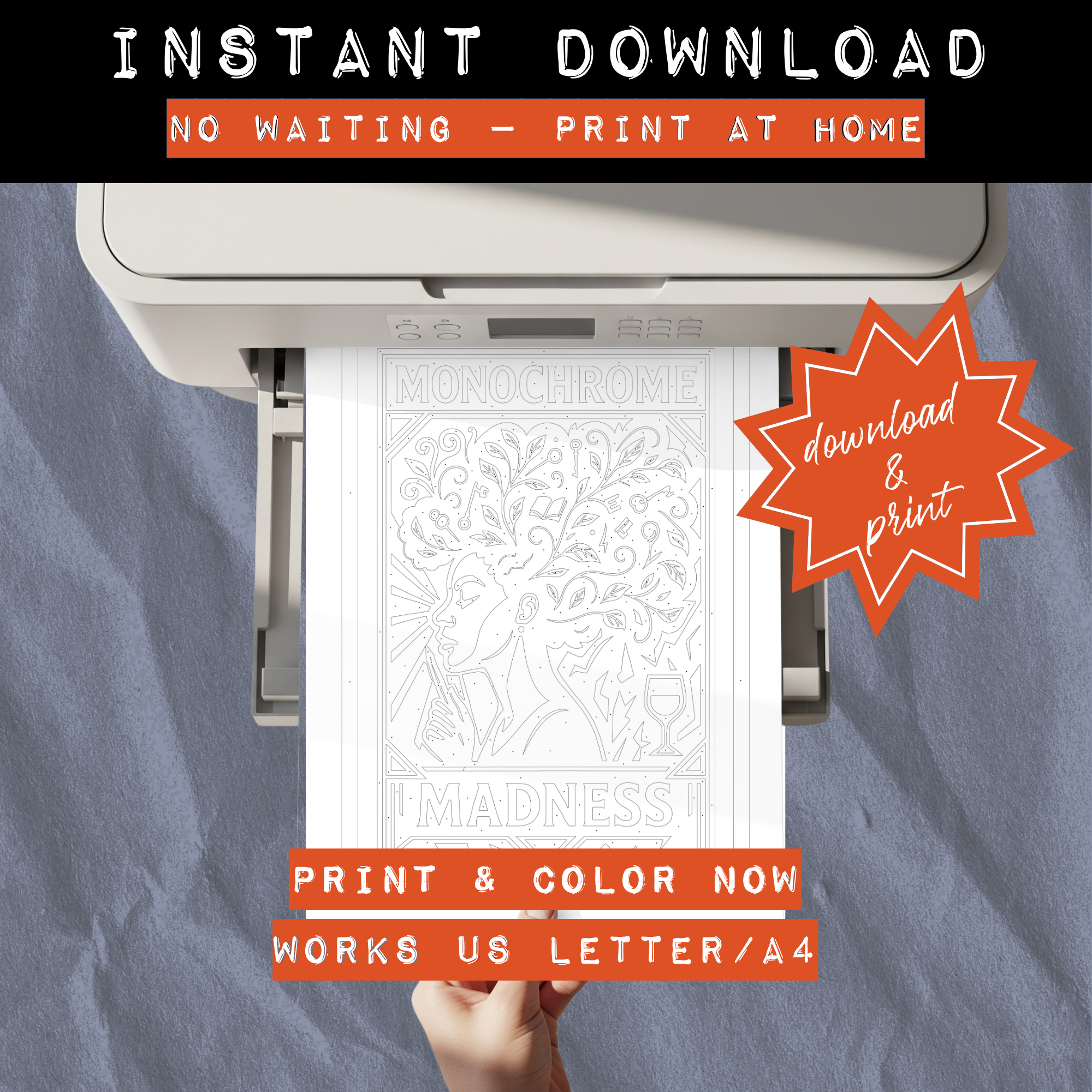 Hot Mess Energy – Funny Monochrome Coloring Book for Chaotic Adults (Instant Download PDF)
