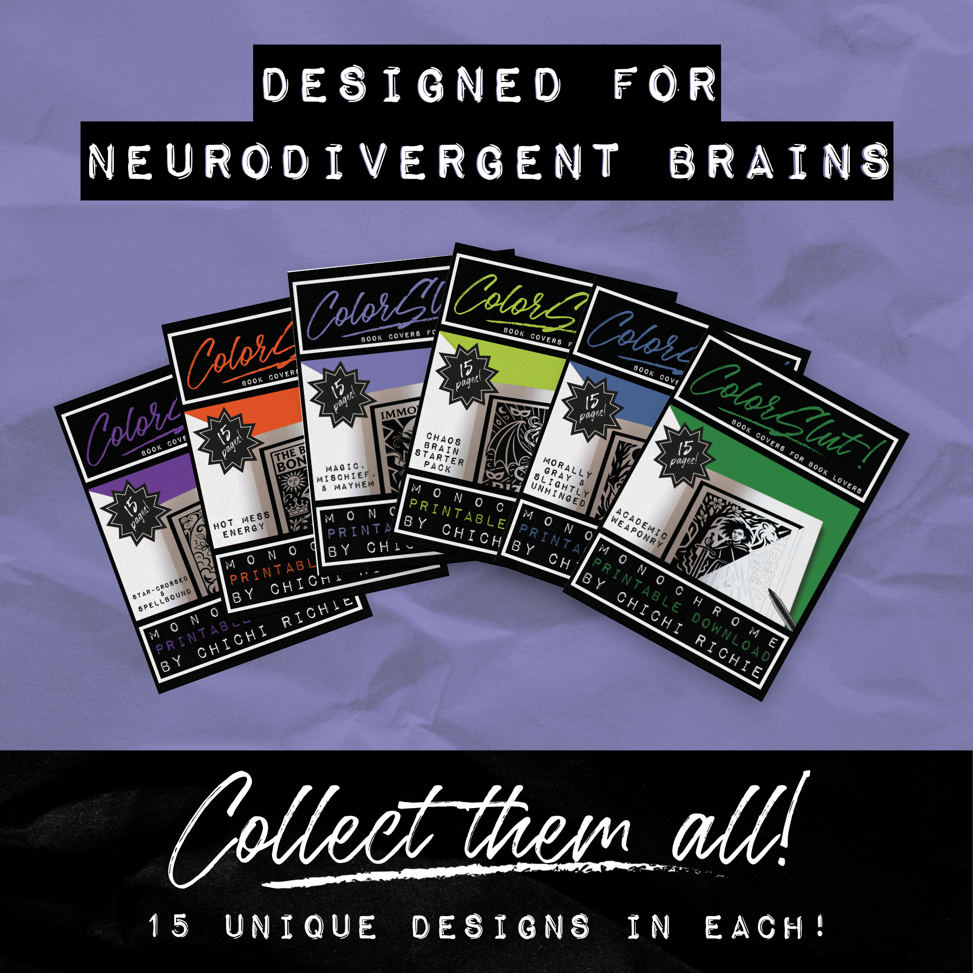 Fantasy coloring with magic & chaos. 15 printable parody covers + fantasy TBR list. One‑pen dopamine art. Instant PDF. By ChiChi Richie