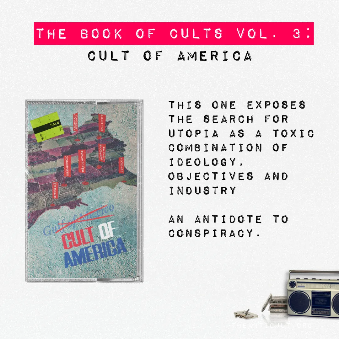 The Book of Cults Vol. 3 – Cult of America names the myths that keep a nation hustling, spending, and praying on command.